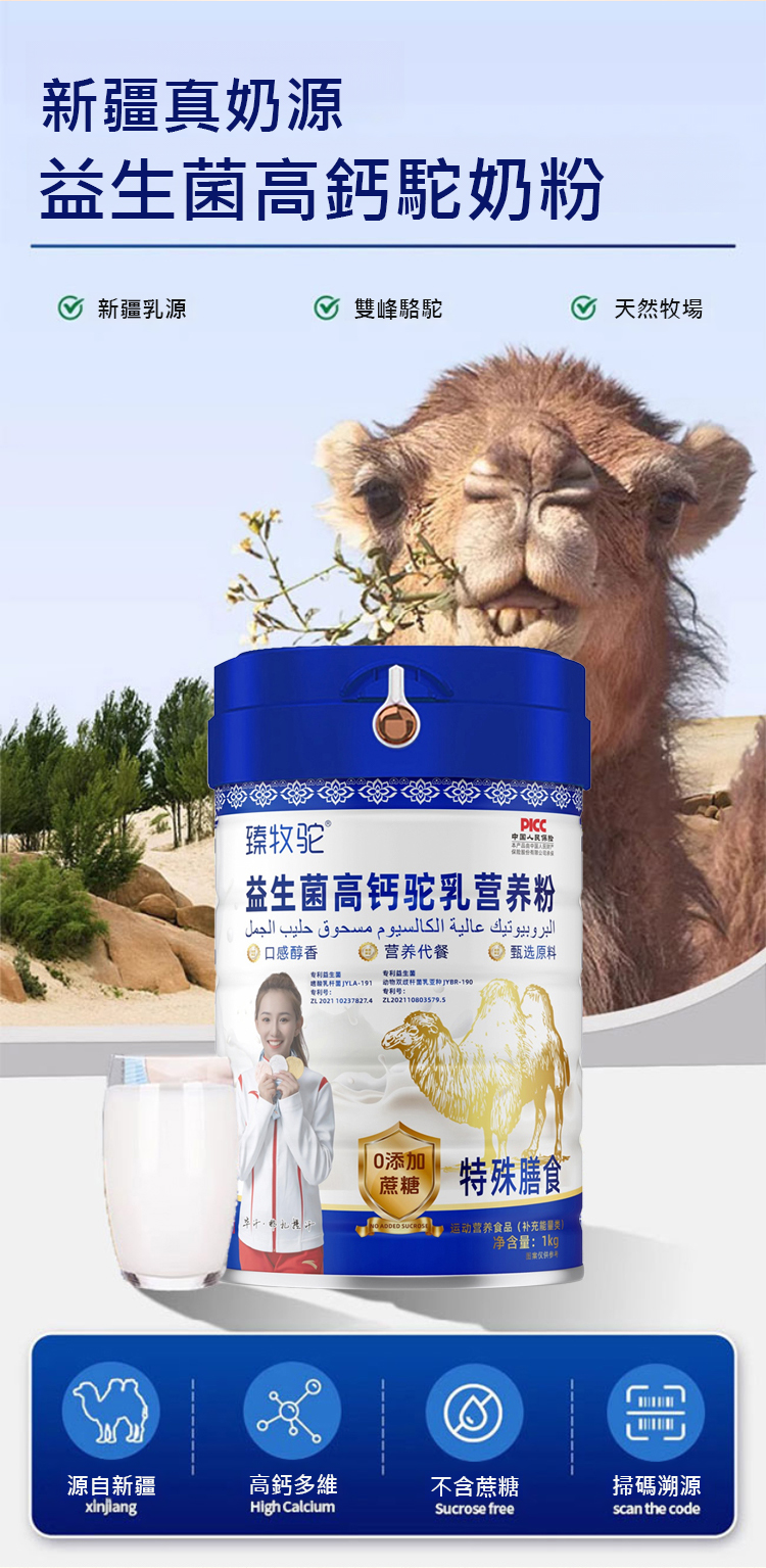 🐫正宗新疆雙峰駝奶粉🥛,伊犁黃金牧場奶源,0 蔗糖無添加,配料錶首位生駝乳!富含高鈣鐵鋅、益生菌及多種維生素,蛋白是牛奶 1.5 倍、鈣是 2 倍,低溫工藝鎖營養,粉質細膩易沖泡,奶香醇厚無腥味,老人小孩孕婦都能喝。年底加量 2 斤裝,廠商直供超划算,全家補營養必備✨